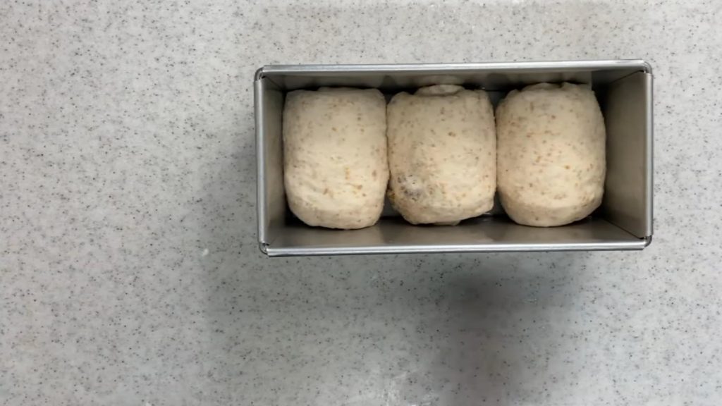 ⑦油を塗った食パン型に入れて、二次発酵する。