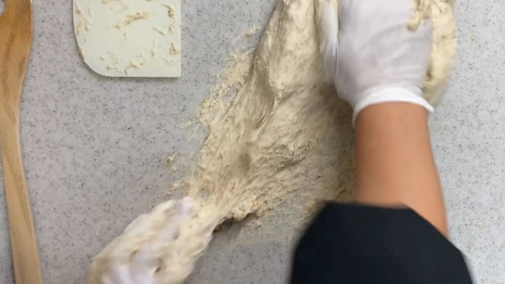 ■20分ベンチタイムを取る。※乾燥しないようにラップをかけておく。