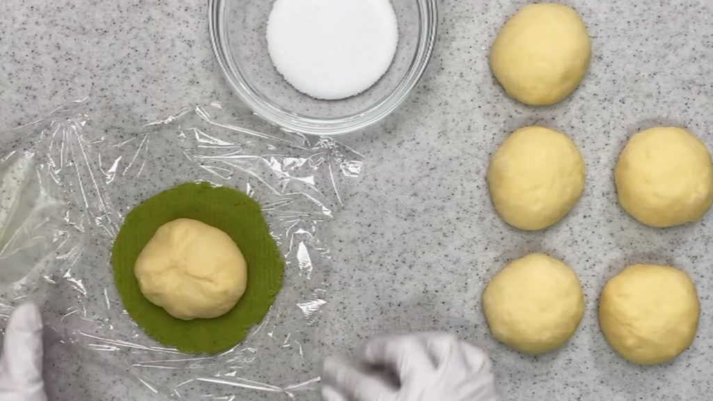 ※クッキー生地は、パン生地を分割するまでに作っておき冷蔵庫で冷やしておきます。特に夏場はだれやすいので、早めに作ってしっかり冷やしておくと作りやすいです。