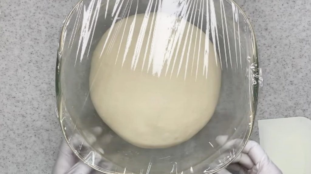 ⑥5分捏ねたら、生地を集めてラップをかけ、10分常温で置いておく。