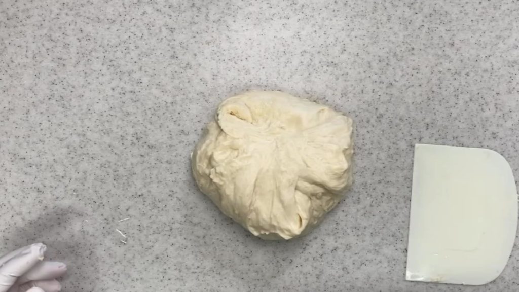 ①台に強力粉を振り、手にも強力粉をつけておく。
