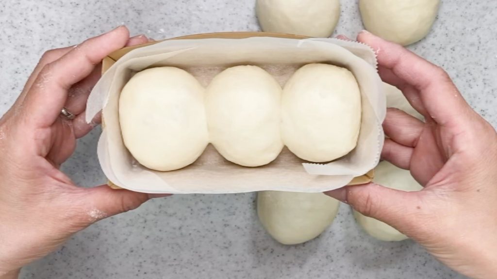 ④丸め直しをして、とじ目を下にし型に3つずつ入れる。